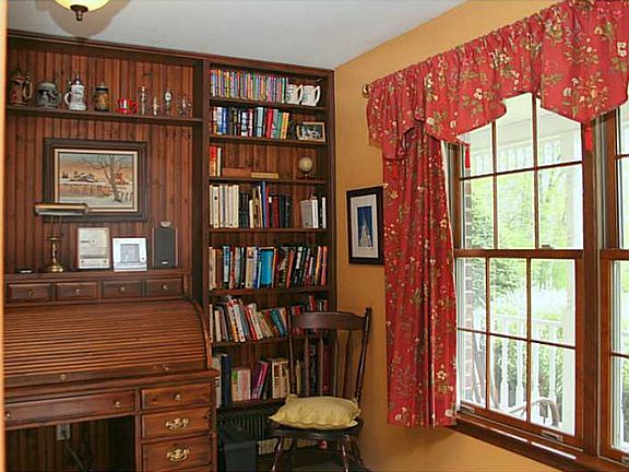 Picturesque 2 story 4 Bedroom home on park-like 1.3 acre lot on cul de sac! 1st floor Family Rm. w/beamed ceiling & brick fireplace! Den w/built-in bookcases! Fully equipped eat-in kitchen w/Jenn Air Dual Fuel Convection Oven. From dining area, bay windows look out over private tree-lined back yard! Master suite w/vaulted ceiling & skylight,double sinks & jet tub! Huge front porch with decorative woodwork, plus rear covered patio. Oversized 2 stall garage! Many quality features throughout this home!