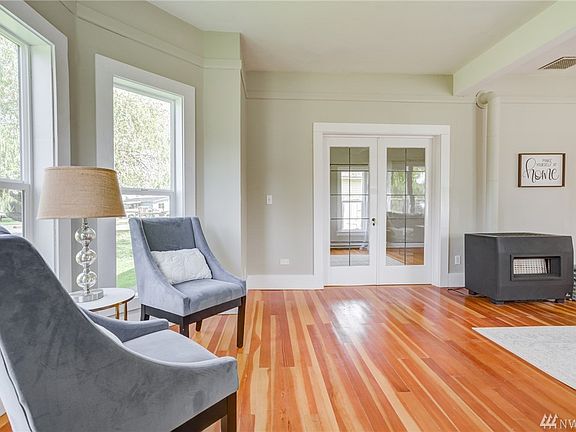 Lovingly restored turn of the century home on over 1/2 acre parcel just w/in city limits. Too many updates to list, this home is a restoration dream come true! Original fir floors throughout, tall ceilings, tons of windows for natural light year round. Beautiful new vinyl wood flooring in renovated kitchen/dining. French doors lead to office or optional main flr bdrm just off living room. Upstrs are 3 more bdrms & full bath. Zoned multi use, tons of income potential for bare 1/2 of property!