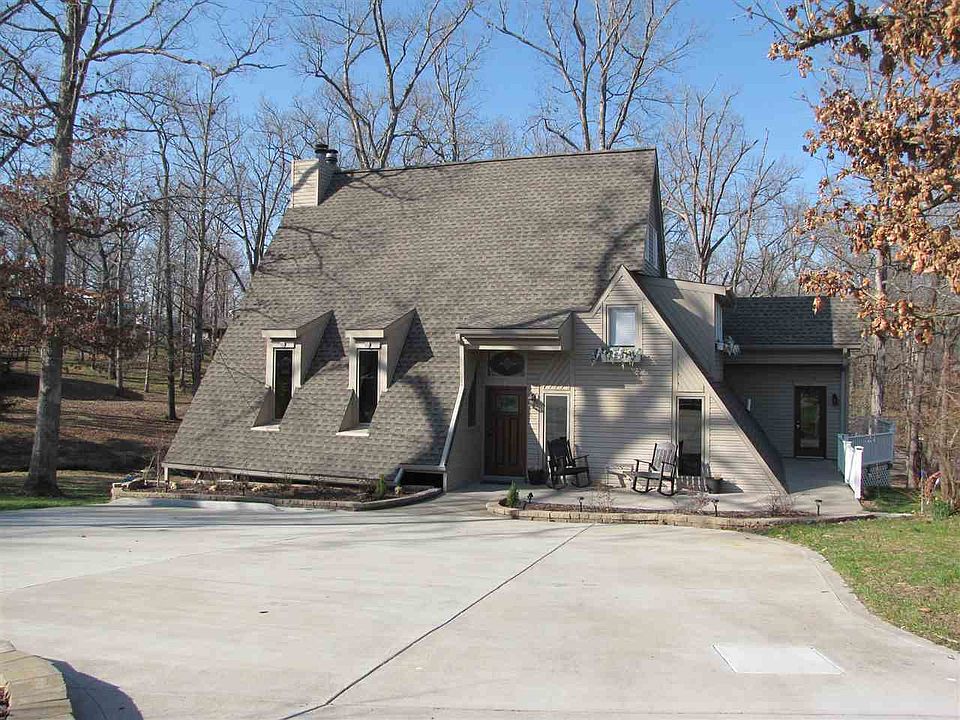 This Beautiful waterfront home has everything to offer with multiple outdoor living spaces. Screened porch & cottage living space with beautiful lake view. Relaxing rustic living area, patio with fire pit that takes you into Master Bedroom. 2 car garage with workshop in the basement, huge pantry, boat ramp and courtesy dock right out the back door! Plus other Cambridge Shores amenities; beach, picnic pavilion, tennis court & community building. Community slips rent upon availability. Dock permit applied for there are stakes in the water were tva and dock company are planning to go.