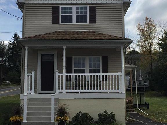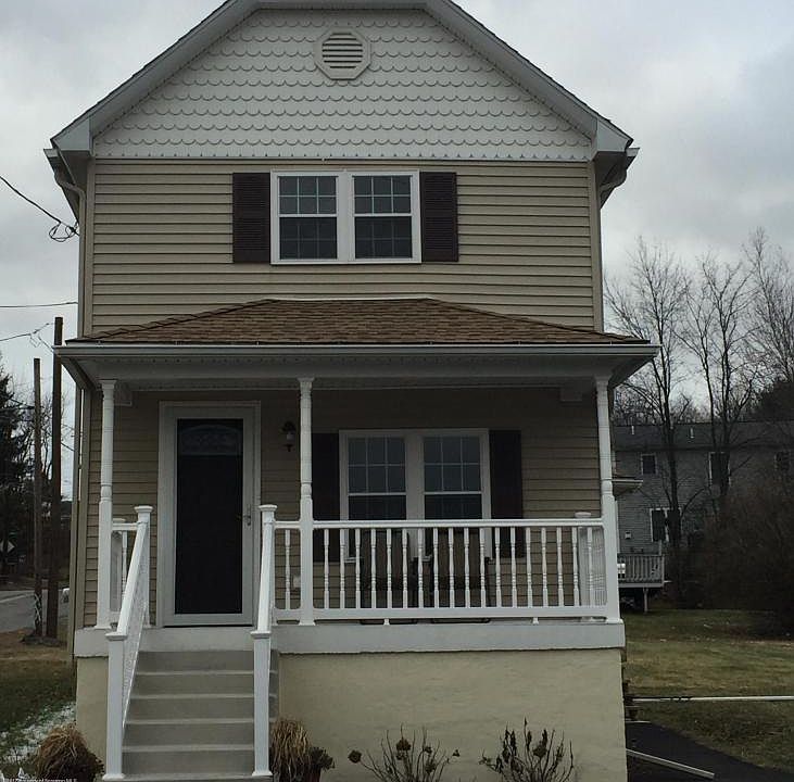 new Maple Kitchen with granite counters and Tile floor. This home has many updates, New Vinyl Siding, New Roof, New Gas Hot Water Baseboard Heating system, New Bath, New plumbing, new wiring, New Replacement windows, doors and Patio door, Completely new Cinderblock Foundation 2006, Water Heater installed 2009, Drywall throughout whole house.