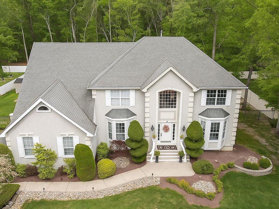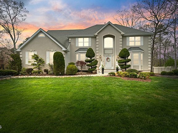 Stunning 5-Bedroom Colonial in The Vineyards at Anderson Run! Situated on a premium lot backing to woods, this elegant home welcomes you with a grand entrance. Highlights include an extended kitchen with granite, SS appliances, sliders leading to large paver patio. Spacious private yard w/ basketball court and swing set. Inside, enjoy a dramatic two-story foyer, two-story sunken family room, large dining room with trey ceilings, beautiful flooring, and wrought iron railings. Laundry room is located off the primary bedroom. Partially finished basement with dual entry, sprinkler system, and security system. This community is conveniently located close to 195 with access to the Turnpike and the Parkway. Home Warranty included. Must see this beauty!