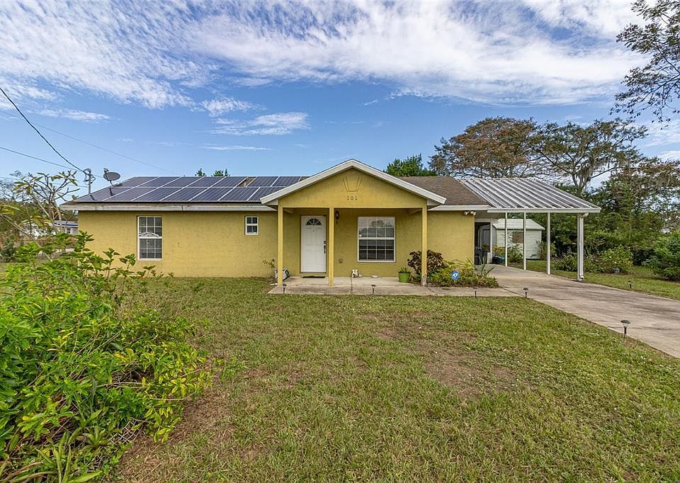 Cute 2 bedroom, 2 bathroom home on a.33 acre corner lot. This home features an open floor plan with french doors off the dining area leading to a large, covered screened lanai perfect for entertaining or enjoying your morning coffee. The new owner will benefit from a new roof and fully paid off solar panels at closing.