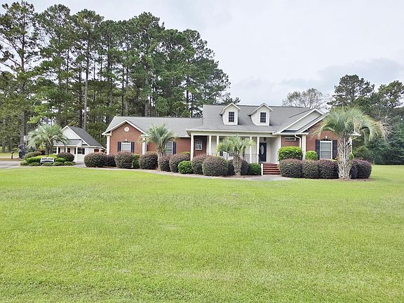 Classic Brick Estate in St. George Country Club.Welcome to this timeless brick home, gracefully situated on a one-acre lot with serene pond views in the highly desirable St. George Country Club Estates. Offering the perfect blend of southern charm and modern luxury, this residence is just minutes from Volvo, I-26, I-95, and historic downtown St. George. Inside, you are greeted by rich solid oak hardwood floors, extensive crown molding, and detailed trim work throughout. The home boasts 4 bedrooms, 2 full baths, and 2 half baths, including a spacious formal dining room and an expansive family room anchored by a gas fireplace. The gourmet kitchen is a chef's delight with custom maple cabinetry, quartz countertops, stainless steel appliances, a center island, and a sunlit breakfast nook.The inviting sunroom is the perfect retreat, offering panoramic views of evening sunsets and the peaceful pond. The versatile fourth bedroom/FROG, located off the rear entry and laundry area, includes generous storage with access to a massive attic ideal for future expansion. The luxurious master suite features dual entrances, a tray ceiling, a large walk-in closet, and a spa-inspired bath with a 5x7 custom curbless shower with dual controls, a porcelain clawfoot soaking tub, dual vanities, and designer lighting. Two additional bedrooms with spacious closets share a beautifully appointed full bath. This home offers a lot of amenities with Generac generator, central vacuum system, lawn sprinklers(needs maintenance), and encapsulated crawl space. Outdoors, enjoy a manicured backyard complete with a covered patio, a deck and swing overlooking the water, a workshop, and ample space for boats and recreational storage. This remarkable home offers classic elegance, thoughtful upgrades, and the perfect Lowcountry lifestyle.