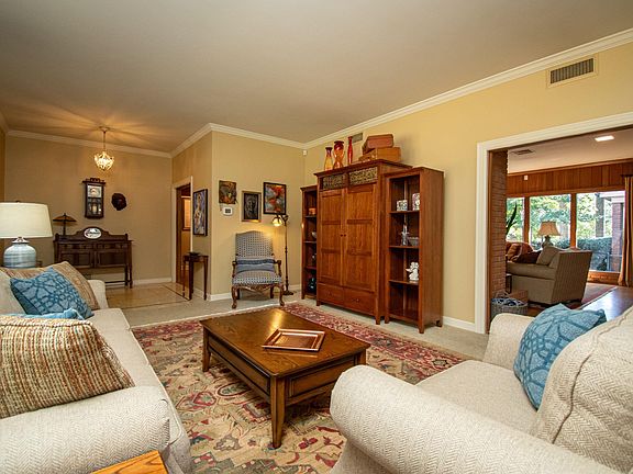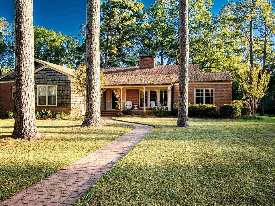 Classic charm and thoughtful design awaits you in this spacious 4 Bedroom, 3.5 Bath home located on over a half acre corner lot in the desirable Country Club Colony subdivision. Welcoming you with warm curb appeal, this brick home was designed by John Abbott in 1959. There is an abundance of storage in this home- with large closets, built-ins, and custom millwork throughout. Some unique original design amenities such as a chiller on the wet bar sink were retained and incorporated in a full kitchen renovation in 2016. The beautiful southern heart pine floors have been refinished in the kitchen/ laundry/ half bath, but are waiting to be exposed beneath the carpeted areas throughout the remainder of the home. In the cozy den you will find a gas log fireplace, red gum wainscotting, and oak block flooring. Traditional touches like pocket doors and custom millwork make this space timeless. More recent updates to the home include a new water heater and new dishwasher, a full renovation in the jack and jill bath, and painting in many areas throughout the home. Outside you will find a 2 car carport, fenced area, generator, and a large workshop space with both electricity and gas.
