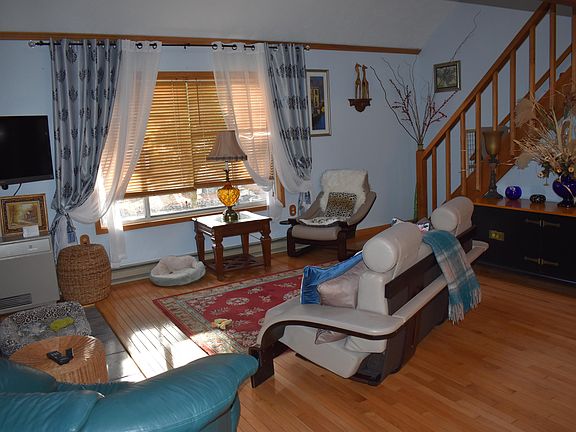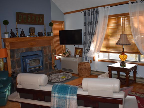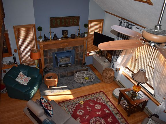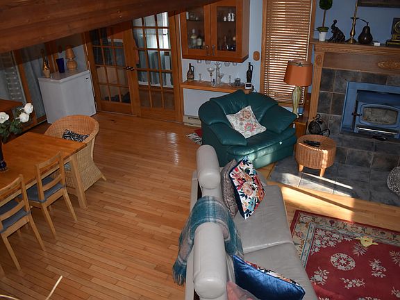 Great Location - Custom ContemporaryAcross the street from the community apple orchards and short walk to beach and boat launch areas , this 3 bedroom, 2 bath contemporary has many fine features. Bright and open layout with dining/living area offering cathedral ceilings, custom tile fireplace and hardwood floors. warm and inviting updated kitchen with appliances. Loft with lots of glass overlooking living area and large enclosed porch with summer kitchen. Nice back yard