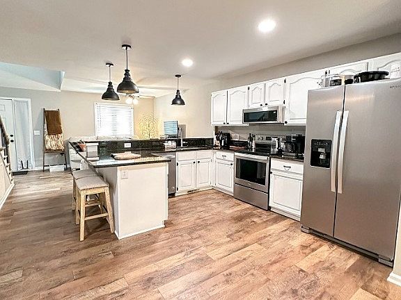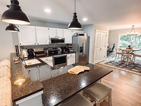 Enjoy your evenings winding down on the front or back porch with a view of the 12th hole. The main level has an open floor plan with new LVP flooring throughout the entire home. The kitchen offers a bar or plenty of room to get together in the dining room. Right off the kitchen, you will find a full bathroom and laundry closet. Make your way upstairs to find 3 bedrooms, two of which could serve as an office space. Right off the master bedroom is a full bathroom. Homes in this subdivision do not come on the market often - so don’t miss your chance with this one! Some of the work done to unit includes knocking down the interior walls to create an open floor plan, ceilings scraped, unit freshly painted, new light fixtures, new toilets and sinks, new molding, painted kitchen cabinets, new appliances and new granite countertops.