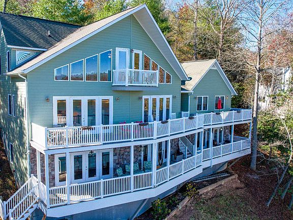 YEAR-ROUND DEEP WATER on LAKE NOTTELY!! Lakefront living at its finest from this impressive 5 bed, 4 bath situated perfectly on the shores of Lake Nottely. Step into the massive kitchen built for entertaining, w/ solid surface countertops, built-in wine cooler, double oven & gas cooktop. Soaring ceilings & large paned windows to complement the breathtaking views of the lake. Full finished terrace level w/ 2nd fireplace, family room & billiards. Private covered dock & an electric tram from the water to the house! This property boasts a massive master suite, complete w/ a catwalk to the outside balcony, perfect for taking in the long-range mountain & lake views! Wrap around composite decks encompass this 3,983 square foot estate w/ a covered breezeway between the main home and its 2 car garage, complete w/ private apartment. Feel secure 24/7 with multiple security features including 11 security cameras strategically placed around the property. Come experience premier lake living!