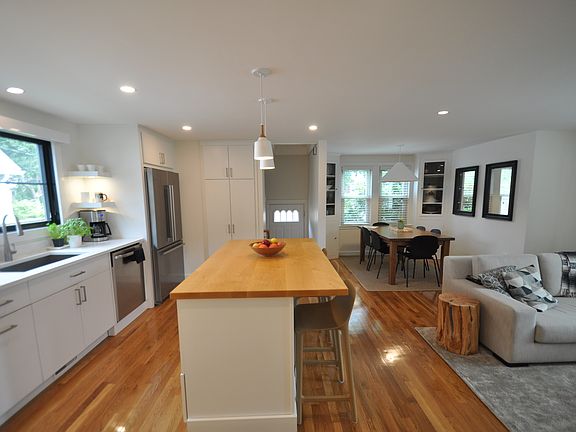 Beautifully renovated ranch in a wonderful West Newton neighborhood! This turn-key gem offers 2 generous bedrooms, 2 full spa-like baths and a fenced in yard on a lovely tree-lined street. The 2019 extensive renovation created an open-concept style of living while creatively extending the usage of space. The sleek updated kitchen offers custom cabinetry, pantry, stainless steel appliances, a butcher-block island with room for four and opens up to the dining area and living room with fireplace. The finished lower level offers a great space for an in-home office or work station for children. There is also a family room with fireplace, a full-bath with large tiled shower, laundry and playroom! Central AC was added and electrical system upgrades were completed in 2019! Conveniently located near the Franklin Elementary school, public transportation and major routes. This property is not to be missed!