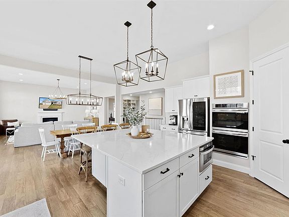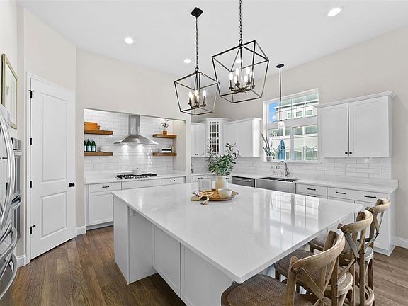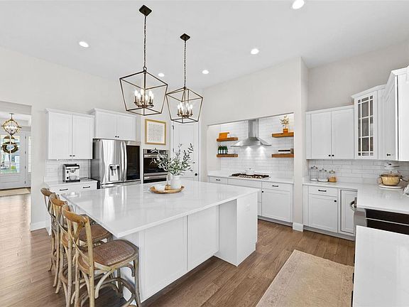 - Breakfast Bar, Breakfast Room, Kitchen Island, Custom Cabinetry, Eat-in Kitchen, Solid Surface Countertop(s), Walk-In Pantry, Open Floorplan, High Ceilings, Vaulted Ceiling(s), Walk-In Closet(s), Double Vanity, Shower, Dining/Living Room Combo, Kitchen/Dining Room Combo, Sound System