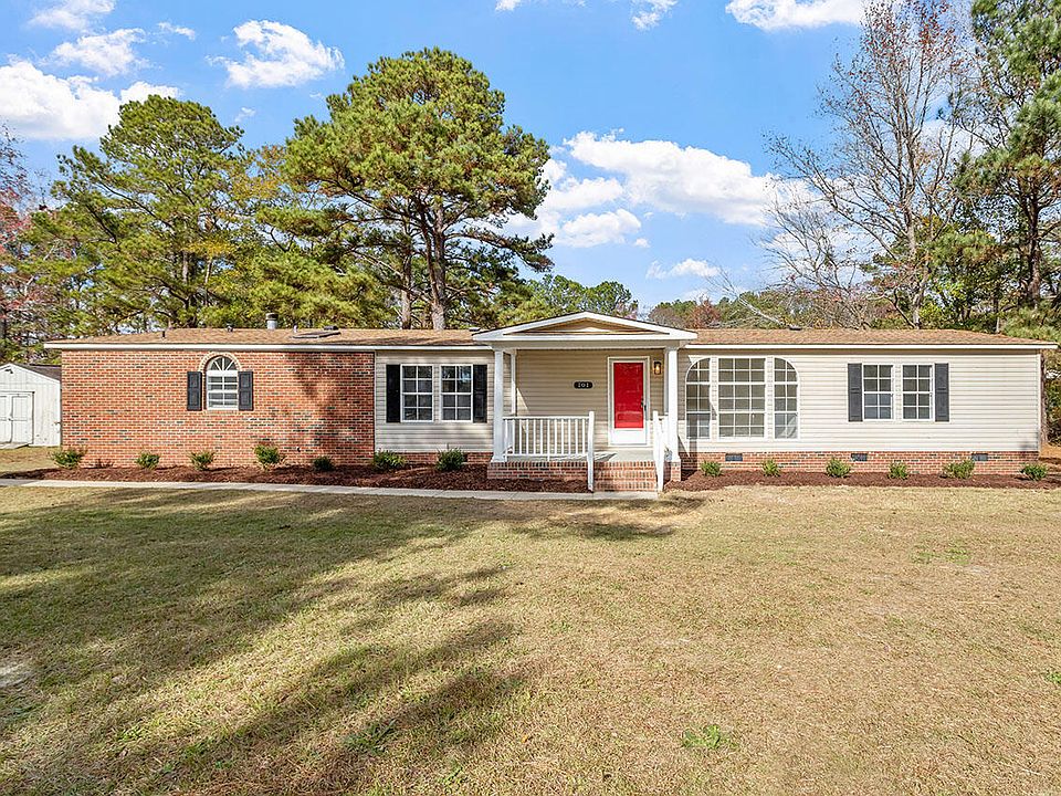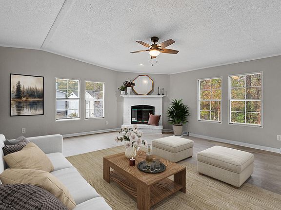 Waterfront Ranch with a bright open floorplan and upgrades galore! Features a custom kitchen with granite countertops, tile backsplash and stainless-steel appliances. Wide plank hardwood like flooring throughout the main living areas; PLUSH carpet in bedrooms and new interior and exterior paint. Deck overlooking flat back yard. Convenient to Fort Bragg, highways and charming downtown Sanford. Move in and enjoy! Staged photos for illustration only, to show homes potential.