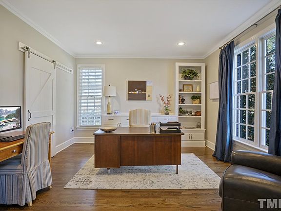 Luxury living in Cary's Edinborough Pointe! Amazing attention to detail in each room of this spacious yet cozy home. Cary amenities so close! A soaring foyer welcomes you into a fantastic floor plan for family and entertaining. 4 bdrms, 3.5 bath, lrg bonus/media room, dining room & office. The open kitchen to the family room is the centerpiece of this beautiful, light filled home. Enjoy morning coffee/relaxing on the huge screened porch with family & friends. Walk up Attic. No HOA. HSA Warranty Included!