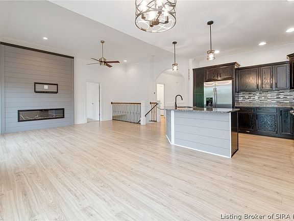 WELCOME HOME! This home in Stonegate Manor is perfect for you! Upon entering you will see an incredible barrel ceiling entryway that opens up into a large Eat-in Kitchen and living room open space. The beautiful custom fireplace and kitchen island bar seating is great for entertaining. The kitchen offers lovely granite countertops and stainless steel appliances. The master bedroom offers a vaulted ceiling with rope lighting while the master bath has 2 sinks, a walk in ceramic shower, separate tub, and a walk in closet. The master bedroom and Bedroom 2 carpet was replaced in 2021 as well as Bedroom #3's LVP flooring. The first floor laundry room has a custom hall tree. Downstairs you will find a walk-out basement with a large family room having access to a back patio, another full bath, and the fourth bedroom as well as a huge unfinished storage space! Lots of closet space! New water heater in 2020. Awesome location in the desirable Sellersburg just minutes away from shopping, food, highways, ETC. Only 6 minutes from Silver Creek Schools. Set up your private showing today!