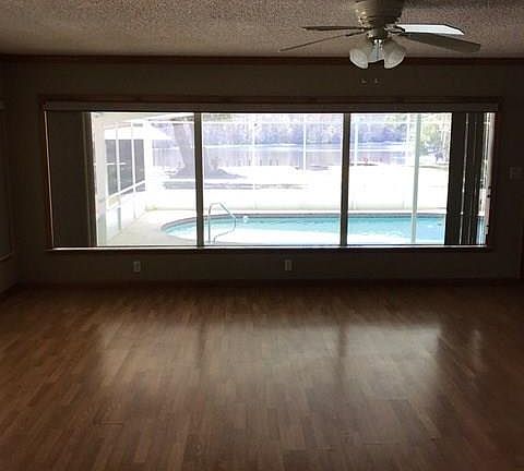 Country home with 2 septic tanks with solar heated pool. A large RV Storage area with steel cover and electricity. Dunn's Creek is your backyard. Dunn's Creek connects Crescent Lake to the St. John's River. Due to the Ocean Tides the Shoreline varies with the tide but minimal.