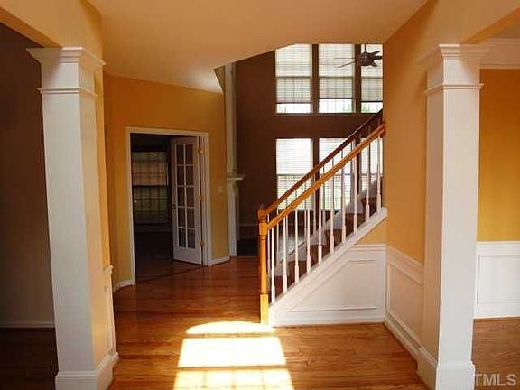 Great family neighorhood in Cary, brick front, soaring ceilings, open floor plan. all refinished hardwoods on the first floor, freshly painted, updated carpets, huge flat fenced in back yard. neighborhood pool, connects to Cary Greenway System, walk to Davis Soccer Park/ playground