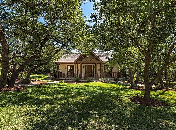 Charming corner lot home on Lakeway's most beautiful street. Watch sunsets over Lake Travis every night! Expansive living area w/picture windows invites the outdoors in. Living, kitchen & master suite on 1st level. Converted garage/bonus room w/2nd kitchen, 2 baths,2 beds downstairs. Peaceful, private backyard oasis. Recent updates: Roof, a/c, septic & pool pump, 2 Nest thermostats. Walk in pantry, laundry chute, full house water filtration, central vacuum system, piano optional. Adjacent lot for sale.