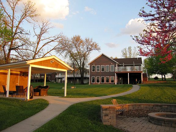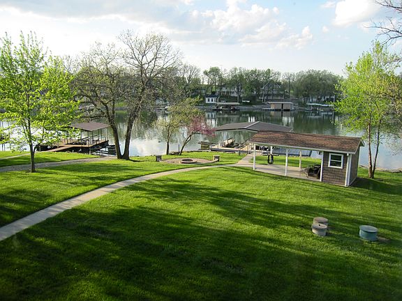 Beautiful lake front home located on deep/wide cove behind the no wake buoy. Main floor includes two master bedrooms with full baths, kitchen with island and concrete counter tops, walk-in pantry, open living and dining area with vaulted ceiling, fireplace and spectacular lake views. The lower level is a walkout with a large living space, full bathroom, 2 bedrooms and a bonus room. It also contains the laundry room/storage/mechanical room and an additional storage room under the stairs. The property has a large maintenance free deck, large concrete patio, lake shack with lockable storage area, lake side fire pit, double slip dock with sun deck and jet ski lift. Amazing lot with gentle slope. Shoreline has a stacked stone sea wall with sand pit/beach. All has been well maintained and at the best location on the lake! 101 Firefly Court (LOT 386).
