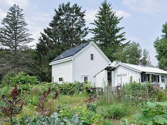 Incredible improvements have been made to the Goetchuis farmhouse w/ 3 great outbuildings, bordered by new Ithaca Land Trust land and across from 72-acre bird and wetland Preserve. By Hammond Hill State Forest, w/ an acre of fenced organic gardens, grapevines, berry bushes, and fruit trees. This renovated 3 bedroom 2 bath home w/hardwood floors, renovated kitchen, main-floor bdrm and bath is full of historic charm. Many updates in recent years including solar panels on the brand new cottage/wkshp that pays 9 months of the electric cost $ COULD be a living space. MUST SEE list of improvements!