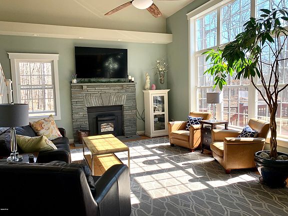 Gorgeous custom built home with many upgrades and details you won't find in many homes. Builder built for family member. Enjoy the privacy and peace and quiet; corner lot & on a cul-de-sac. The open floor plan is perfect for entertaining w/ many beautiful windows letting in lots of natural light. Featuring granite counters, stainless steel newer appls, wood flrs, master en-suite with steam shower, walk-in closet, office, eat-in kitchen, formal din & liv rm, family rm,2 wood stairways to 2nd fl, laundry rm on the 2nd fl,cent air, pellet stove,finished bsmt w/ outside entrance,2 car garage,paved driveway, ample storage areas, wired for generator hook up. Better than new; mature landscaping, garden area, stoned sidewalks & patio. Lots of outdoor living areas w/ the huge deck and pergola