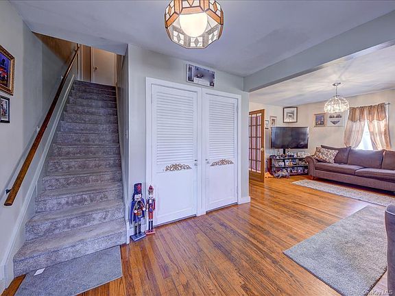 Cozy Cape in a convenient location, set on corner lot with a two car detached garage. Walk through the front door into a nice size living room with hardwood floors, to the left are French doors that lead into a huge formal dining room with an abundance of sunlight, enter the large eat in kitchen area with stainless steel appliances and laminate floors. Washer/dryer room off the kitchen and access to the full partially finished basement. Walk out the back door to a magnificent fenced in level backyard with an in ground pool for those hot summer days. Upstairs you will find 3 bedrooms all with hardwood floors and 1 bath. Minutes to metro north, bus highways, parks, shopping, walkway over the hudson, restaurants, Vassar Hospital, Marist, & Vassar College. A/O no more showings