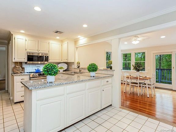 Simply irresistible! Updated and move-in ready. Beautiful welcoming home! Public Water, Sewer Gas heat in Buttonball area with sidewalks! Not to mention this YARD!! Large sweeping flat yard (slopes from house to the flat area) This home has so many wonderful possibilities. Need an in-law? Fully Finished Walk out lower level has 9' ceilings, brick fireplace, full kitchen/full bathroom and great storage options. The hardwood floors were just added to family room and refinished on the first floor/stairs. Large front to back living room with fireplace. Stunning kitchen with ss appliances and granite counters. Huge breakfast bar area, opens to the sun-drenched eat-in area overlooking the beautiful yard & large composite deck. Kitchen also opens to the stunning family room with shiplap walls, ceilings and tiled floors. Beautiful full bathroom on the first floor has been fully remodeled; soaking tub. Features a Beautiful brick fireplace focal point and lots of windows! Kitchen also features an extra desk area and lots of pantry storage! Master suite has closets galore and office/den area with HW under carpets and full bath with stall shower. The additional roomy 3 bedrooms have HW under carpets! You will love the LL! extra tall ceilings and lots of light - this space doesn't feel like a ll! Adds 772sf to overall house. Laundry also in LL and hook-ups for stackable in 2nd floor hall closet! Recent Updates include; Roof, gutter, sliders, garage doors and kitchen and bath remodels