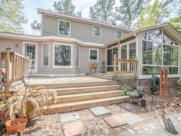 Fantastic home in the Hunters Woods section of desirable Crowfield Plantation! A wrap around front porch welcomes you to this 3 bedroom 2.5 bath home that sits on a large corner lot with lots of privacy! The family room with laminate wood grain floors and wood burning fireplace opens to a beautiful sunroom that overlooks the private fenced backyard. The sunroom is heated and cooled for year-round enjoyment. The island kitchen offers wood floors white cabinets a sunny breakfast area with bay window and an adjacent room that makes a great office. Upstairs you will find the spacious master suite and two additional bedrooms each with wood floors. Other features include a large back deck two car garage and large driveway that offer plenty of space for parking and storage.