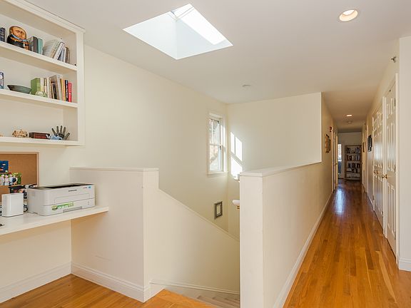 Super sunny! Spacious! Contemporary! This gorgeous 2002 condo with parking, AC and porches front and back has it all! Spectacular open floor plan incorporates living room, large dining area and kitchen ~ perfect for entertaining and modern day living. Gas fireplace, extra-high ceilings, skylights and nice details make the living area a stand out. Gorgeous granite and stainless kitchen has great counter space and storage. Spacious bedrooms, plenty of closet storage, 2 modern baths and full size WD too! Added bonus is an office nook with skylights and access to a front porch. Easy walk to Jamaica Pond, parks, the Green D line, Lincoln Elementary, BHS and shops/restaurants. Ideal location for the medical community in Longwood, downtown commuters and those loving the outdoors. Truly one-of-a-kind in Brookline!