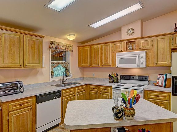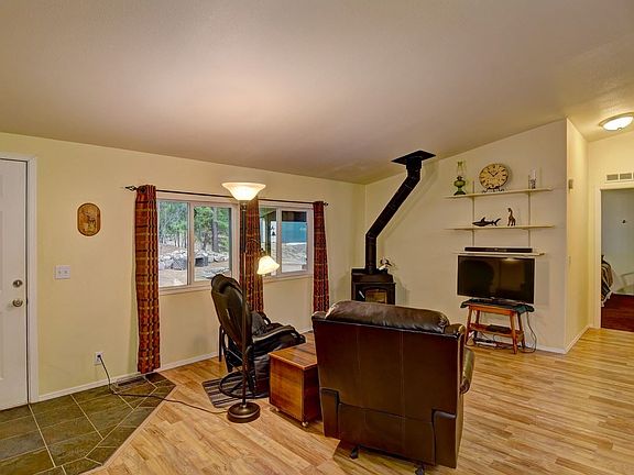 The sunsets from this home and property will stir your heart nearly every day. A short trip up the hill from a paved county road leads you to this well taken care of 4-bedroom manufactured home on two lots totaling 8.14 acres. Enjoy the covered front and back porches, the wildlife, the pine trees and a nice shop. Inside the large island kitchen opens directly to the living room with a toasty warm wood stove. Enjoy meals in the formal dining room and finish the day in the spa tub in the master suite. Call us