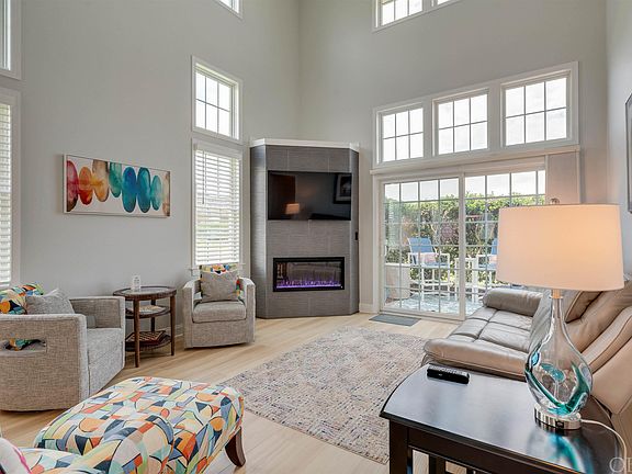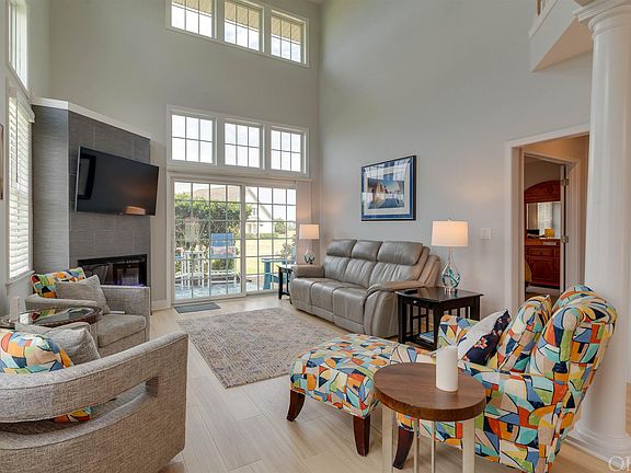 Easy living in this modern move-in ready townhome style condo in the heart of Kitty Hawk! Drive right into your garage and step right into this beautiful open floorplan that has been renovated to enjoy a maintenance free lifestyle. On the main level, the living room boasts 18 ft ceilings with windows galore making this such a bright and airy room that is open to dining and a large kitchen with bar seating. Half bath, laundry and the primary suite with a custom tile shower and walk in closet are also on the first level. You can fully live on one level. Upstairs features a loft, 2 additional bedrooms, full bath, and a large finished bonus room over the garage and additional attic storage. Relax and grill on your back patio. The community keeps the lawn green and lush and you're only a short walk to the community pool and pool house. 3 minute drive to the beach, walk to 2 restaurants, also close to shopping and so much more! (Recent renovations include new luxury vinyl flooring and carpet, renovated master bath with custom tile shower, new comfort height toilets, tiled corner fireplace with new electric fireplace unit and tv. All new paint, light fixtures, ceiling fans, custom blinds, light switches, doorknobs and even the hinges were replaced ;)