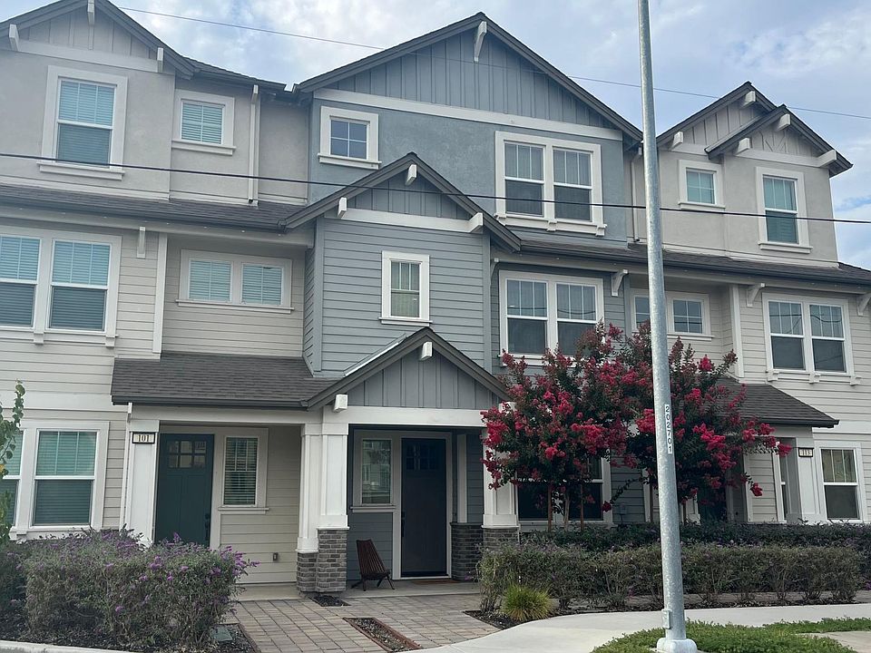 A quiet 5-year new townhome in downtown Livermore. Close to shopping, restaurants, and downtown activities. Idea for a family with commuters, easy access to SR84 & I580, walk to ACE train and bus transition center. 3 bedrooms with 3.5 bathrooms, 2 car garage with over-hang storage spaces, tankless water heater, fire sprinklers in house. First floor has one bedroom with full bath, high quality laminate floor, can be also used as office for those working from home. Second floor is living area, with kitchen, granite big island and counter top, half bathroom, and laundry, with upgraded hard wood floor, double door refrigerator and washer and dryer included. Spacious primary room suite located on third floor, with a balcony, with comfortable carpet. Next is additional 2nd bedroom with full bath, high quality laminate floor. Rent is $3500 per month. Security deposit: $5000. No pets, non smoker. Tenant is responsible for all utilities. Lease term can be annually or "month-by-month after 3 months". Note: this house was tentatively rented out. Will take it off-market after finalized.