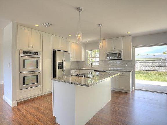 This La Mancha home in popular Royal Palm Beach has been renovated from top to bottom, and is awaiting it's new owners. Located on a desirable corner lot, this property is over-sized at more than 1/4 acre. This home lives well featuring a very efficient and open split floor plan. The large master suite occupies one entire side of the home, and offers a large walk-in closet and of course a brand new, modern bathroom. The new kitchen is the focal point of this property. New appliances, thick granite counters, double-ovens, subway tile backsplash, large cabinets to the ceiling, pendant lighting, and huge island make this kitchen perfect for both cooking and entertaining. New flooring throughout and fresh paint inside and out complete this incredible transformation. See it while it lasts!