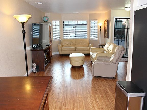 Looking for a single story and 2 car garage? Look no further, this wonderful single story - townhome is located in the heart of Hollister, CA. It is both a short walk to downtown Hollister as well as the closest grocery store, bank, food hubs, gym, etc. This home is also directly situated next to Rancho San Justo Middle School. This end-unit property is in a gated community with street access via the front door. Enter this home and be welcomed into the living room and adjoining kitchen. Shortly down the hall, you will find the half bath perfect for guest use. Located in the rear of the home are the primary and secondary bedrooms along with the full bath. Step out of the back door into the adorable courtyard where you can enjoy your own private space and fresh air. Extending from the courtyard, there is your own finished 2 car garage equipped with the perfect woodworking bench and storage shelving. Also, Did I say swimming pool? You can take a dip in the pool and enjoy those summer days when you own this beautiful home. This end unit only has neighbors on one side and won't last long. Call you REALTOR today!