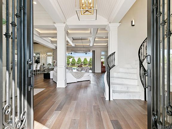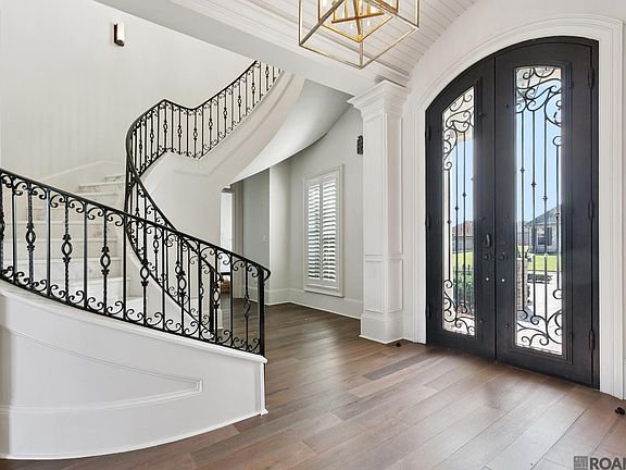 Luxurious Custom Home by Troyer Builders. This fully custom home blends modern luxury with timeless craftsmanship. Step into the grand foyer with a curved marble staircase and custom metal rails. The chef’s kitchen impresses with cathedral ceilings, exposed wood beams, a 15 ft leathered marble island, Sub-Zero glass-door fridge and wine cooler. Wolf 48” gas stove with double oven & skillet, custom hood, soaring cabinets, and Restoration Hardware lighting. The open living area features a NanaWall glass door opening to an outdoor oasis: a detached pool house with bedroom, full bath, sauna, cathedral-ceiling living room with wood-burning fireplace, and a unique infinity-edge pool with limestone decking. Outdoor entertaining shines with Sub-Zero/Wolf appliances and Nevo whole-house/backyard smart audio. Inside, enjoy engineered wood floors, mortar-washed brick accents, marble counters, a floor-to-ceiling custom stone ventless fireplace, and high-end fixtures by Newport Brass, Brizo, and DXV. The master suite offers an MTI matte stone tub, marble floors, and a Kohler digital shower with built-in speakers. Additional features include a 3-car garage with custom wood paneling, media closet, security cameras, James Loud Speaker 7.1 surround sound, transom doors, custom barn doors for the upstairs study nook, Rain Bird sprinklers, and a second living area upstairs. Every detail, from the Aquasana whole-house water filter to the stone paver motor court, reflects superior quality and comfort, creating the perfect blend of elegance and modern family living.