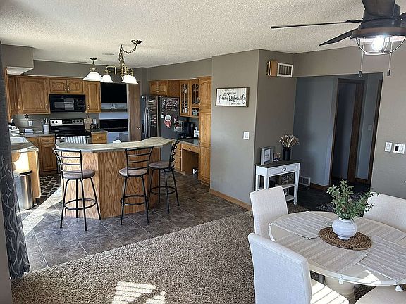 Beautiful 4-bedroom, 3.5 bath located next to Woods Edge Golf Course.  Spacious kitchen with dining room area with a wood-burning fireplace. The recently updated living room includes a beautiful, vaulted shiplap fireplace wall.  The vaulted ceilings lead you from the main floor to the upper level where you will find three bedrooms.  This includes the primary bedroom with a whirlpool bathtub, double sinks, and a shower with an additional walk-in closet. A large office/exercise space, a bedroom, and a bathroom along with another living space for entertaining is located in the finished basement.  Plenty of storage space as well.  New water heater installed in February 2024.  There is ample yard to host your family and friends.  Includes a new 10’x20’ shed- 2022.  With this very family-friendly neighborhood, you will feel right at home! Asking price $334,900 call Jolene at 563-608-6793 for a showing today!