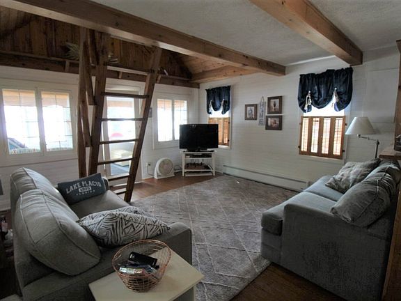 The views from this charming Higgins Lake cottage are top notch situated on the Southwest side of the lake. Super cute beach themed cottage. Lots of updates have been done including new decking, new cement walk ways, completely remodeled bathroom plus a kitchen update with a stylish tile back splash & new dock cleat cabinets pulls too! Great living space here with an open concept kitchen, dining and living room. This place can sleep 6 between the main floor bedroom, the upstairs loft area and the attached porch. The bed on the porch can be converted to a table as well. With the 50 foot wide lot, the home could easily be expanded to add additional space. Wood floors, cedar ceilings, skylights and the lakeside enclosed three season porch. 1.5 Car detached garage, great for extra storage space for all the water toys. Nice deep lot! Hurry this won't last long!