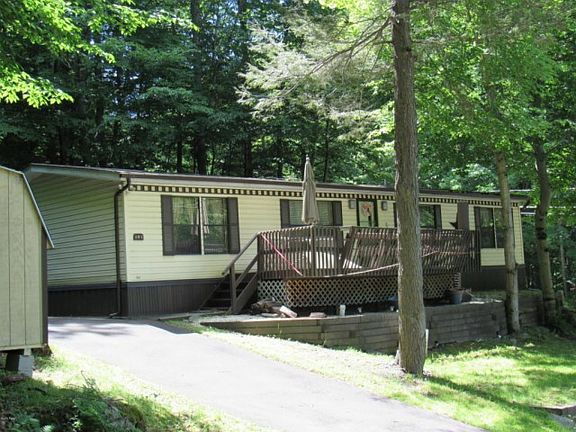 AFFORDALE Lake Wallenpaupack Community Home NICE PLACE NICE PRICE for SUMMER FUN and WINTER by the FIRE PLACE or just Sit on the SPACIOUS DECK FOR RELAXING. 3 Bed Room/2 BATH..open floor plan, SPACIOUS LIVING ROOM / FAMILY ROOM LARGE kitchen Dining Room the deck is 20' X 12' & A 12' X 7'Shed. Amenities include Water & Sewer LAKE ACCESS, Pool, Marina with Clubhouse Close to I 84 and Area Attractions & CASINOS. Don't delay call for a showing Today.