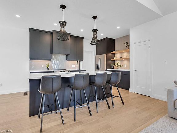 Welcome to this beautifully crafted two-storey home nestled in the tranquil village of Mount Elgin. Just moments from the 401 and a short drive to Tillsonburg and Ingersoll, this custom-built residence by Hayhoe Homes offers both convenience and comfort. As you step through the inviting foyer, you'll be drawn into the open-concept main level, featuring soaring 9 ft ceilings that enhance the sense of space. The designer kitchen is a culinary delight, equipped with a large island, quartz countertops, stainless steel appliances and a cozy breakfast/coffee area. A spacious pantry provides ample storage for all your needs. The expansive living room boasts vaulted ceilings, creating a perfect setting for relaxation or entertaining. Adjacent to the living area, the dining space features patio doors that lead out to a lovely patio, ideal for outdoor gatherings. Engineered hardwood floors flow seamlessly throughout the main level, adding warmth and elegance. Convenience is at your fingertips with a dedicated main floor laundry room. The second level is home to four generously sized bedrooms, including a large master suite complete with a walk-in closet and a luxurious 4-piece ensuite. This charming home is the perfect blend of modern design and serene village living. Don't miss your opportunity to make it your own!