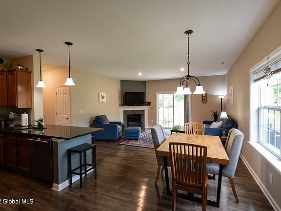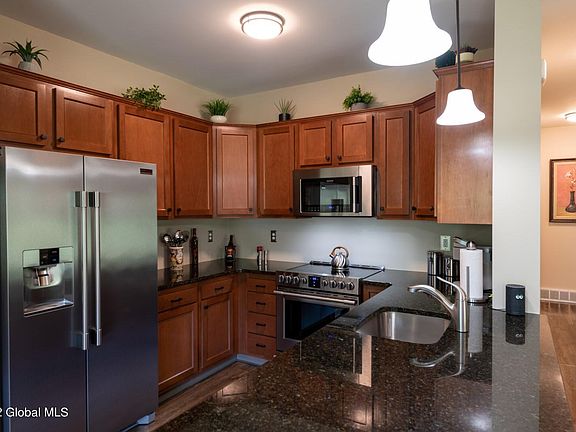 Move right into this 4 year young, 1st floor, Amedore-built condo! Excellent condition, nothing needed to be done! MAINTENANCE FREE! Never mow your lawn or plow the driveway again! Enter the foyer through front door or the 1 car, attached garage. You'll be greeted by the open floorplan, drenched in plenty of natural light. Luxury vinyl plank floors throughout, no carpet! In the kitchen: a pantry, granite counters, SS appliances & gas line run for future gas stove. The fireplace gives the living room a warm & inviting feel. Step onto your patio and enjoy some time relaxing outdoors. Down the hall is the guest room and main bath. Tucked away is the master bed with dual closets and en suite bathroom. Conveniently located, full laundry room connects to the utility room w/ extra storage space.