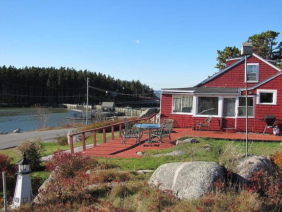 Panoramic views of the working harbor from the sunporch, deck, and almost every room of this 1940's seaside cottage. Perched on a hill, this exceptional location is just outside of downtown Stonington and convenient to lovely Sand Beach. Nice yard with granite outcroppings, perennials, and lawn areas. A terrific opportunity for affordable water views. Three bedrooms, one bath, vacation rental history.