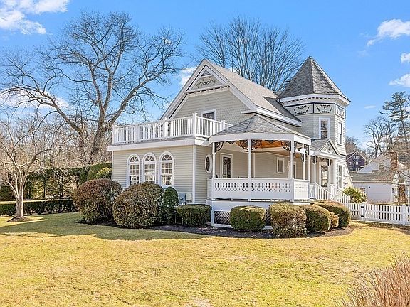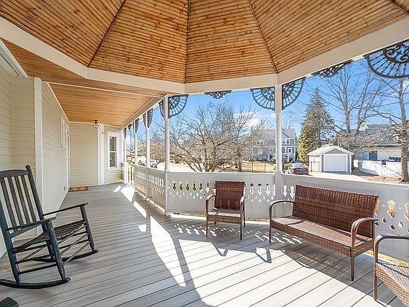 This lovely colonial victorian has all the detail and beauty that makes it one of a kind. Walk onto you gazebo styled front porch and enter through the two story foyer with its curved staircase & maple floor w/inlay and be wowed Open concept kitchen, living room, dining room w/brick wall & fireplace w/wood stove.Go through your french doors & step down into the family room w/an abundance of windows, radiant heated herringbone style floor, built-in jacuzzi w/Italian hand-painted tile and sliders to a deck. The first floor bedroom has built in cabinetry and unique half moon windows. 3 additional bedrooms - main bedroom w/walk in closet & access to a private balcony & 2nd bedroom w/its own private deck.The basement offers a home office, work area and cedar closet for storage. The heated garage w/loft offers even more. All of this situated on a fenced in corner lot w/hedges of stunning hemlock for privacy abutting Maple Field.Whole house exterior was painted last year, porch & roof @6 yrs