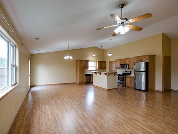 Spectacular slab house with an outstanding open floor plan! This is one of the larger ranch style floor plans in the subdivision (nearly 1,700 sq ft of finished living area) and the second you walk in the front door and see the high vaulted ceiling - the wood laminate flooring - and the open floor plan design, you will think, and feel, that the house is even larger than that! All three bedrooms are very spacious, with the smallest still being 13.11 x 10.7...and two of the bedrooms feature walk-in closets. The master bedroom comes with a full connecting bathroom with a dual sink vanity as well as a tub/shower combination unit. Both bathrooms have new flooring installed and all of the carpeted areas have just been professionally steam-cleaned. All interior walls (except for inside closets) have just been painted. The interior has also been cleaned from top to bottom. Large corner lot with a fenced-in backyard. This house is in true move-in condition! Come out and see for yourself.