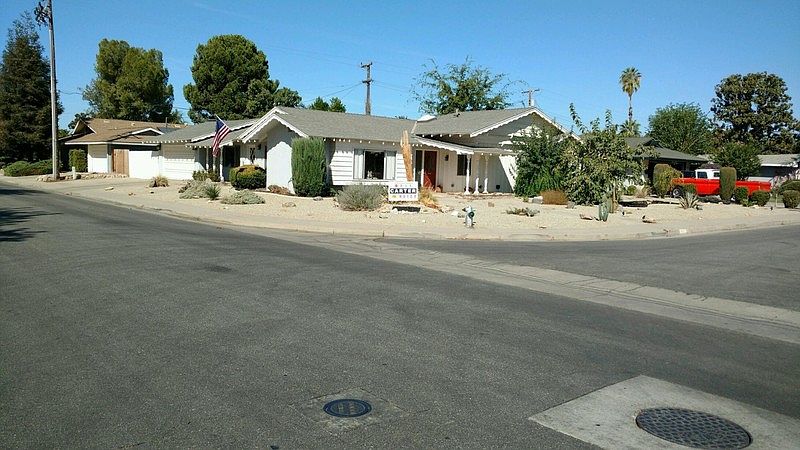 The oversize lot also features a 2-car garage with workbench and plenty of shelving plus RV parking beside the driveway. Fully fenced backyard with orange, cutie, grapefruit, pear, pomegranate, almond trees and grape vines plus room for a vegetable garden and bricked area for your personal fire pit. A covered patio with ceiling fan makes for year-round outdoor living and is perfect for entertaining. The front yard is completely xeriscaped for low water use and easy maintenance and was just named Best Xeriscaped Yard in Bakersfield. Both front and backyard have automatic sprinkler systems. This home is truly a must see! Near schools, shopping, and easy freeway access.