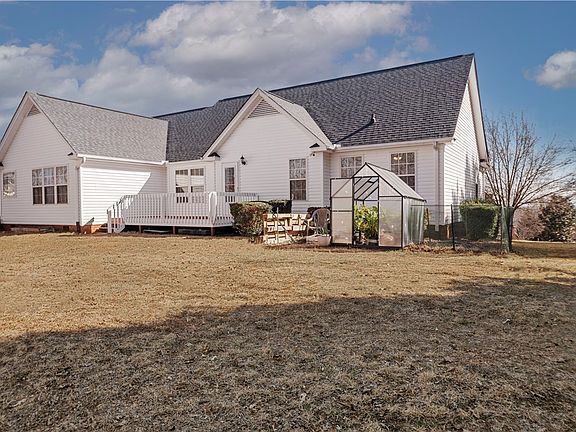 Miss it the first time?? BACK ON THE MARKET!! When you get to the front door, stop and look behind you at the incredible views from the front of this home. If you didn't notice them driving up, you will from now on! Also take time to appreciate the gardener that's poured into this lot - perennials bloom in all the beds without your input, and mature fruit trees in the back provide peaches, apples, and blueberries throughout the summer. Once you step inside, fresh neutral paint throughout means a clean palette is waiting for your decorative touches - the hard work is already done to make this home your own! The foyer leads into an open floor plan living room. The entry frames the timeless fireplace with gas logs, and provides storage closets on either side of the foyer. To the right is a formal dining room, perfect for your dinner parties, office, or playroom. The living room opens onto a spacious white kitchen with miles of countertop prep space and lots of cabinets for storage, then a breakfast nook. Above the garage is a flex room with closet that could be used as a 4th bedroom. To the right in the home is the primary suite with walk-in closet and full bath boasting double sinks and jetted tub. The split floor plan provides extra privacy perfect for multiple generations. To the left of the foyer are two generous bedrooms and a full shared bath. Back in the living room, find the exit to the backyard, accessing a great grilling deck and perfect side yard seating area to enjoy those views. Sellers are also leaving the greenhouse and a storage building. In this non-HOA home outside the city limits, the backyard possibilities are limitless. Summertime tree cover provides extra backyard privacy, as well. Just minutes from shopping, schools and restaurants in Easley, but far from the traffic headaches, 101 Hallmark Lane is the ideal place to breath deep every day after work. Convenient to Clemson, Greenville, and all our upstate lakes and mountains. Come take a look today and fall in love!