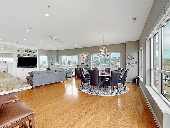 Once in a lifetime opportunity! Penthouse panoramic views of Cincinnati skyline, Mt. Adams, pool, and Ohio river! Three deeded garage parking spaces. Interior 2889 sq. ft plus 1028 sq ft. balcony. Open floor plan with extensive upgrades.