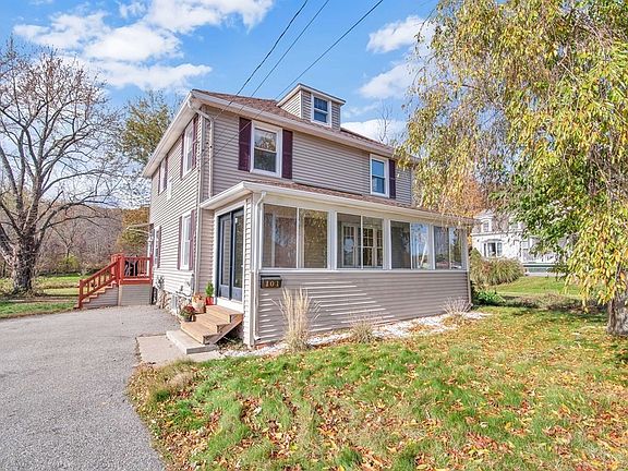 Settle into this charming colonial before New Year! Set on a 0.3 acre leveled lot, offering 3 bedrooms, 1 full bath, oversized deck and sun splashed 3 season porch. Spacious living room with picture window and french doors opens to formal dining room with built-in cabinets. Updated eat-in kitchen with stainless steel appliances and deck access, gleaming hard wood throughout complete this floor. Upstairs boasts roomy bedrooms, full bath with laundry and additional storage. Walk-up attic and full, unfinished, walk-out basement offer potential for expansion. Great yard, abutting conservation land with shed. Welcome home!