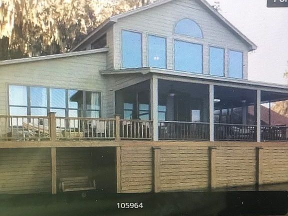 WHAT A VIEW!! The perfect lake house w/ 100 ft of water frontage on gorgeous LONG POND & is ready for you to enjoy this Spring/Summer. Custom built w/ a two story wall of windows & a 22 ft ceiling that's beautifully finished w/ tongue & groove wood. The open family room & kitchen is perfect for entertaining inside or out on the large screened back porch. The kitchen has been updated w/ a new tile backsplash, painted cypress cabinets, stainless appliances & a large breakfast bar. Solid wood flooring & tile throughout!! Dining room w/ a breathtaking view that is open to the family room. Two bedrooms & two bathrooms downstairs. Master bath w/ a jetted tub, separate shower & double vanities. Large upstairs bedroom w/ a full bathroom that has a clawfoot tub. 20x13 extra room upstairs could be a bedroom if a closet were added or the perfect game room. AS IS 16x28 boat house w/ apartment.
