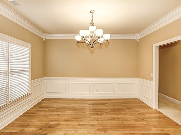 - DINING ROOM DESC: Wood Floor, Smooth Ceiling, Chair Rail, Crown Mold, 9? Ceiling