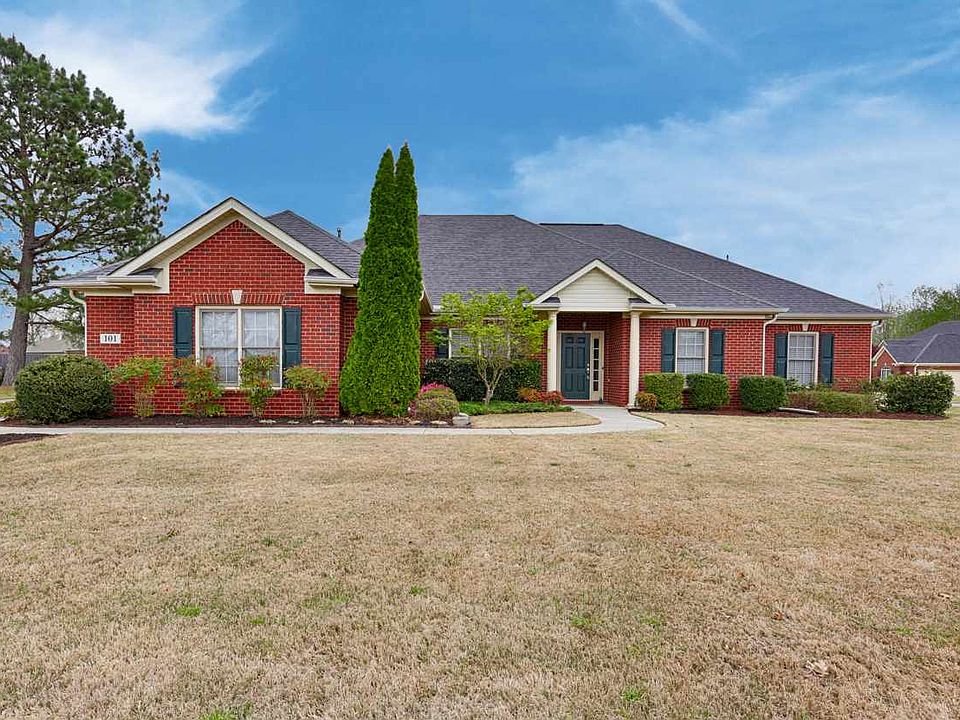 Lovely full brick rancher with storm shelter! This home is clean and move-in ready! Freshly landscaped situated on a large corner lot in a cul-de-sac! , Community pool is within walking distance! Spacious master suite with glamour bath. Lots of crown molding, smooth ceilings, and recessed lighting! Kitchen features center island, breakfast bar, and built-in desk! Lots of natural light, large open floor plan, plenty of closet space and storage! Convenient to schools, shopping, and restaurants! Call today to make this lovely home yours!!