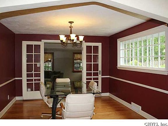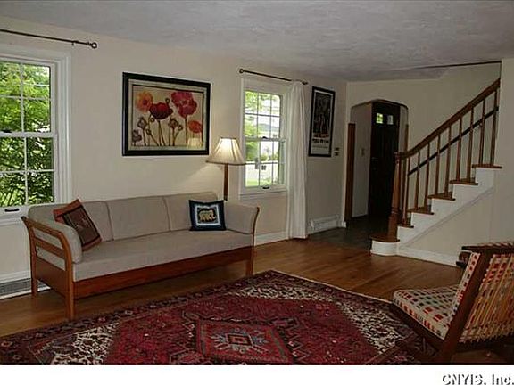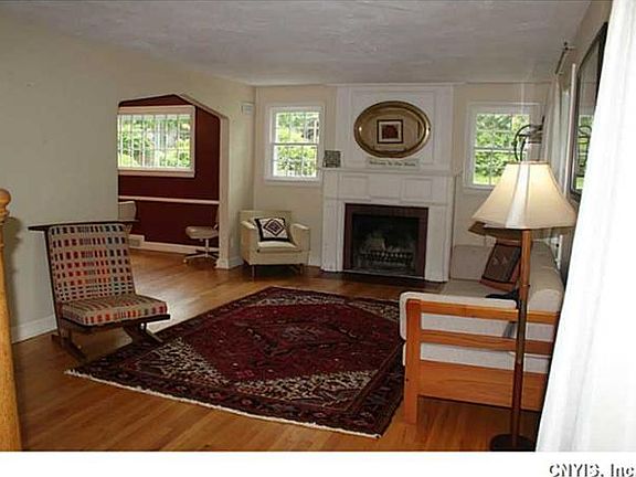 Well cared for Dewitt colonial features spacious open floor plan with hardwood floors, living room with wood burning fireplace, dining room with French doors leading to bright sky lit family room with gas fireplace and door leading to deck and beautiful salt water pool and great park like yard. Your own vacation destination right outside your own back door! Please note taxes are without STAR exemption. House has been pampered/insulated by ZeroDraft in 2013. Finished playroom in attic as well as finished lower level. High end furnace and a/c. Most newer Pella thermal windows.