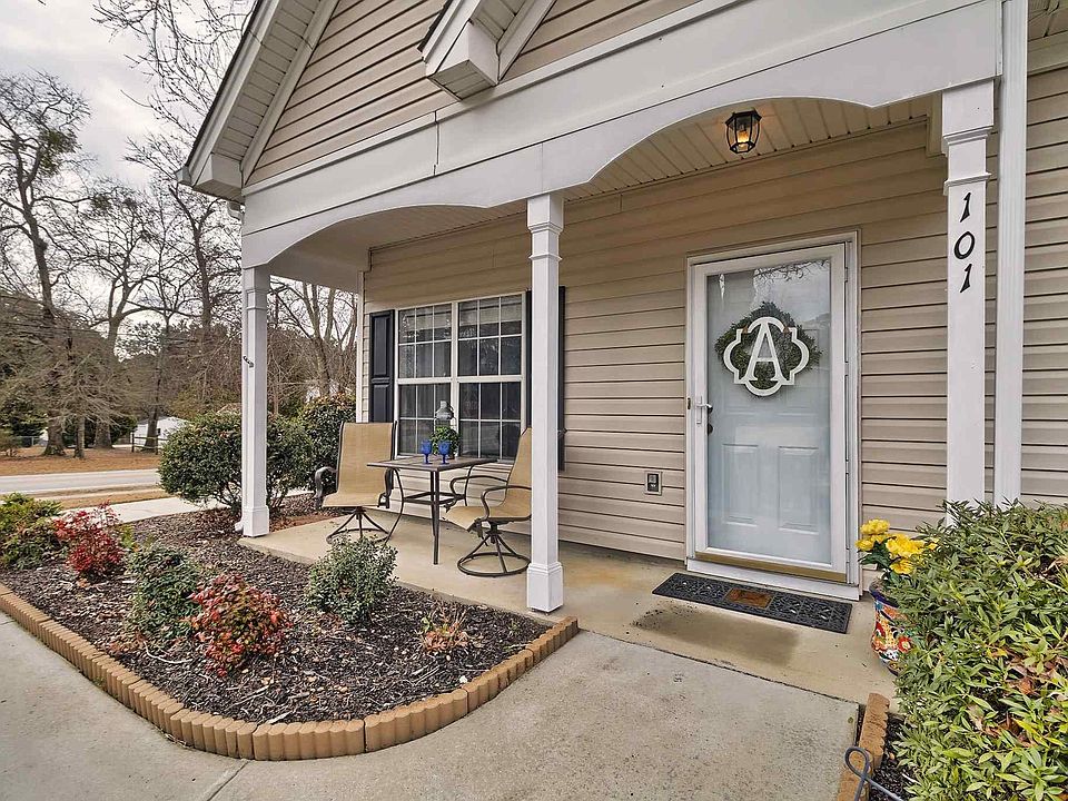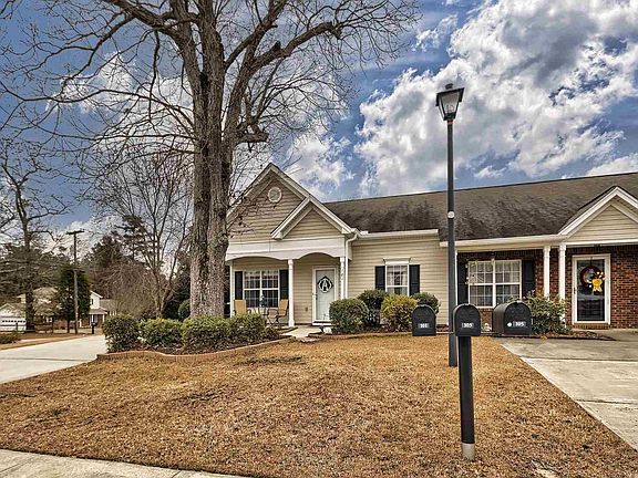 Located in the heart of Lexington just a few blocks from restaurants and shops of Main Street, the IceHouse Amphitheater and Virginia Hylton Park! This corner lot, end unit patio home sets apart from the rest with it's side yard, 3rd car parking pad and gorgeous landscaped trees! Enjoy walking the neighborhood on the sidewalk or watching passersby on the covered porch! Inside you'll find new gray carpeting and laminate flooring! Kitchen features white cabinets including a large section for extra storage, a front window with room enough for a small table to enjoy morning coffee! All appliances have been updated with GE Slate Stainless premium suite including above stove microwave, dishwasher, smooth surface range and french door refrigertator! Even the kitchen sink has been updated to match! Dining area large enough for table and china cabinet with high ceiling open concept living space featuring gas fireplace! Laundry room is more than a folding door with room for storage too! Master suite with private bath and walk in closet as well as 2nd bedroom and bath! The best feature that makes it unlike the rest is the 328 sq ft heated/cooled sunroom with 2 storage closets for holiday decorations or hobby storage that overlooks the back yard flowing into green space and the beautiful community pond featuring a relaxing swing! Even more storage in attached exterior closet out back and a small patio for grilling!