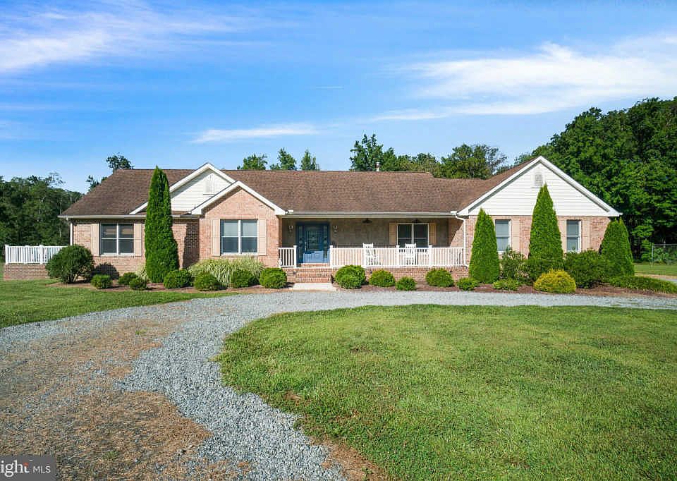 Simple serenity on Hazelwood Ct.! Stone driveway takes you past picturesque pond to 10.8-acre piece of property in pocket of privacy! Easy to live-in space and open-concept floor plan defines this 3BRs/2 ~bath brick/shingle home. White railing edges covered front porch, while cone-shaped evergreens provide height and low-lying shrubs offer balance. Turned 2-car garage maintains front beauty of home.It~s easy to see why 2 rocking chairs looking out to trees on horizon it is a popular perch! Note new geo-thermal system with all new duct work, new granite in kitchen, new energy-efficient appliances, painted cabinets and fresh paint in many rooms over last 5 years or so. Tile-floor foyer is wide and welcoming with cherry wood mirrored slider closets on one side and wainscoting-type wall with hooks grace opposite wall. Ideal balance of rustic charm and upscale elegance. Space opens up to huge back of homewith faultless blend of FR and DR. Hardwood floors reign in DR with bump-out bay window, offering views to panoramic natural views. Vaulted ceiling FR is adjacent to DR and these spaces are linked together by dual ceiling fans that occupy both rooms. Lightly dusted chocolate colored walls are throughout, while gas FP with white tile/wood surround has tile hearth. French doors flank either side of FP and lead to generous screened-in sun porch with apex ceiling and bamboo-leaf ceiling fan, and is presently stocked with TV and mini refrigerator. This room is bound to be family favorite! Dual-arched entrance to kitchen has appeal of a yesteryear architectural element. Sleek tile floor, granite countertops, collection of GE SS appliances and small-squared tumble-marble backsplash blend with center island with flat cooktop boasting turquoise-painted base, linen white cabinets with open shelving for cookbooks, and bump-out breakfast nook with ~ wall of beadboard to offer modern amenities with farm charm. Off kitchen is elongated laundry room and its size is confirmed by 2 windows, 3 ceiling lights plus a set of build-in cabinets. Access here to both outside and 2-car garage. PR in sunflower gold sits off kitchen and features dual-door cabinet for storage of extra hand soap and towels for guests, and continued tile floor. Hardwood hallway leads to BRs, which are situated around perimeter of mainspace, rendering center of home the hub. Both secondary BRs are sizable with beige carpeting and plenty of natural light. Hall bath in royal blue offers tub/shower and dual-sink oak vanity with dual-oval mirrors, making multiple morning routines a breeze. MBR is quite large with walk-in closet with handsome cherry build-ins, offering easy organization for his-and-hers wardrobes. Situated to take advantage of its natural surroundings, MBR touts French doors that lead out to spacious deck with white railing and seemingly endless views of tall trees and quiet acreage. Master bath boasts dual-sink cherry vanity with dual-oval mirrors and pewter high-hat lights. Property has 5 acres of partially fenced-in cleared land and 5 acres of wooded land. Enveloped with curtain of towering trees along border of property and blended with manicured lawns punctuated by swing set and wishing well, along with pear,peach and apple trees, enjoy this quiet dose of tranquility and privacy. Extra perk is the owned solar panels that help decrease electric bills year-round. Mins to Rt. 13 and all its conveniences. Home is a hands-down delight in Dover!